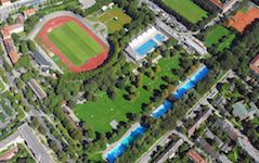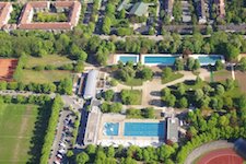 |  source  Luftbildsuche.de (1)The FKK pool is the farthest right in the diagonal line of several pools.  From the FKK pool, the FKK lawn extends upward and rightward to the tennis courts.  Some elements of this photo are out of date.  There is a building atop what used to be the tennis courts, and the pool at the bottom of the photo has been filled in.  However, the FKK area remains the same. |  source  Google.com (2)FKK pool at center toward top, with FKK lawn extending toward left |  source  Google.com (3)The FKK area is labeled on the lower left of the graphic on the right side of the photo. |  |  | (1) The FKK pool is the farthest right in the diagonal line of several pools.  From the FKK pool, the FKK lawn extends upward and rightward to the tennis courts.  Some elements of this photo are out of date.  There is a building atop what used to be the tennis courts, and the pool at the bottom of the photo has been filled in.  However, the FKK area remains the same.