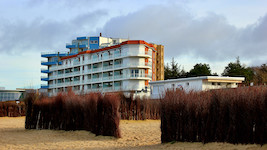 (4) The network of screens normally set up in the FKK area is not present in this photo.