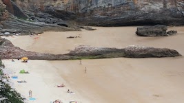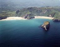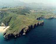 (2) Playa de Ballota at right, with nude area toward far right. Beach at left is Playa de Andrín.