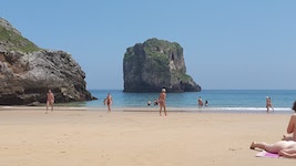 (2)Playa de Ballota at right, with nude area toward far right. Beach at left is Playa de Andrín.