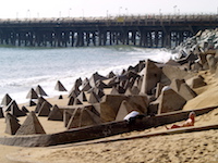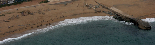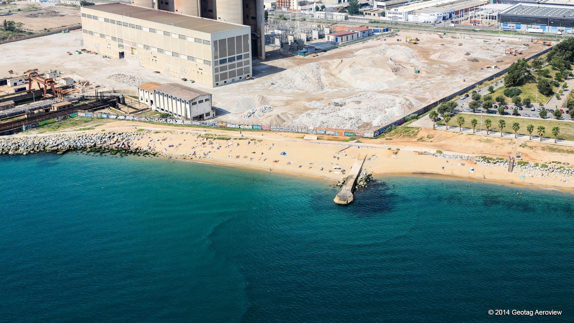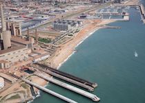 The long piers holding the big pipes no longer exist. They were dismantled in early 2016.