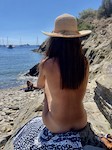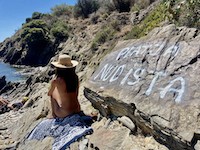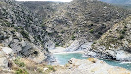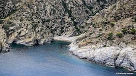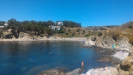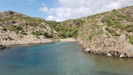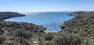 default view: Playa de S'Alqueria Gran toward right background; rocky area where most nudity occurs toward foreground