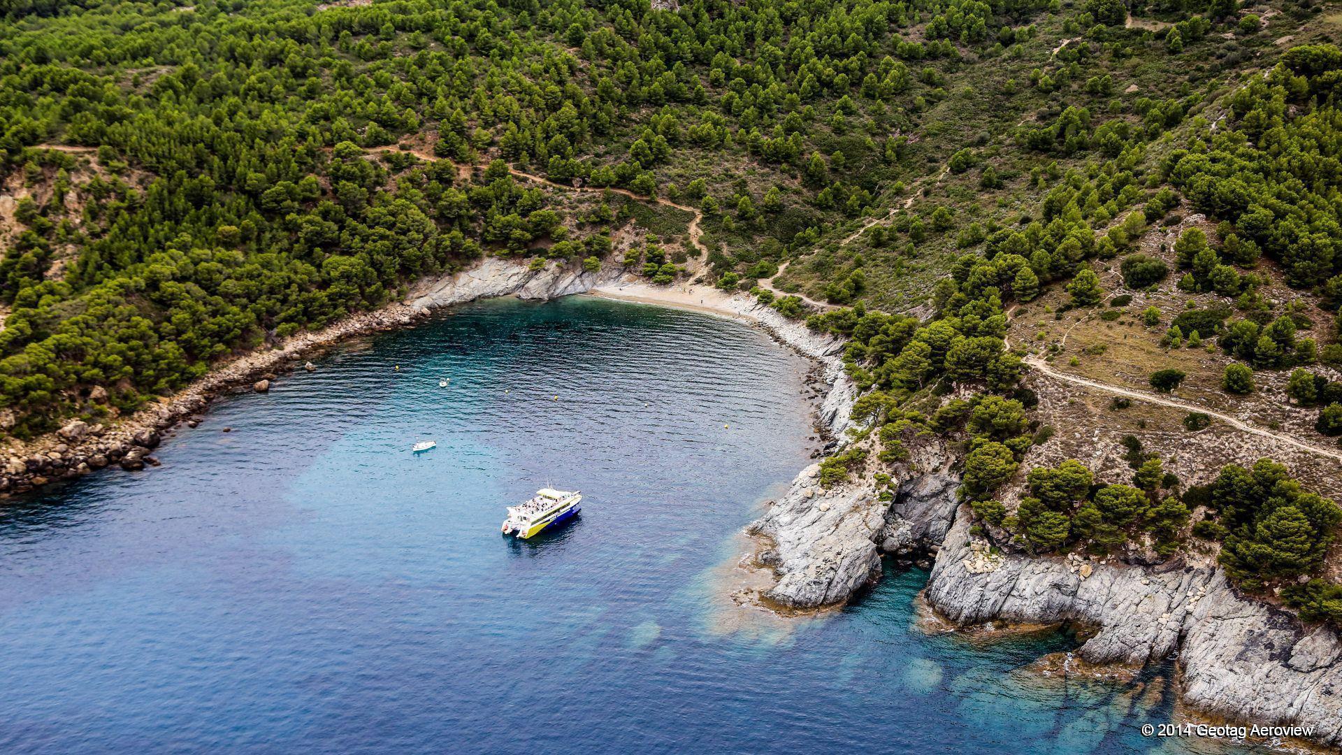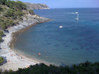Cala Murtra on left side of photo