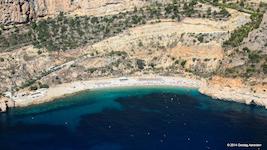 (1) nude area of Playa Moraig near center, Cala de los Tiestos toward far right