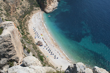 (5) nude area of Playa Moraig toward center, Cala de los Tiestos hidden or barely visible farther right