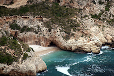 source Tripinview.com (1)nude area of Playa Moraig near center, Cala de los Tiestos toward far right Playa del Moraig & Cala de los Tiestos |