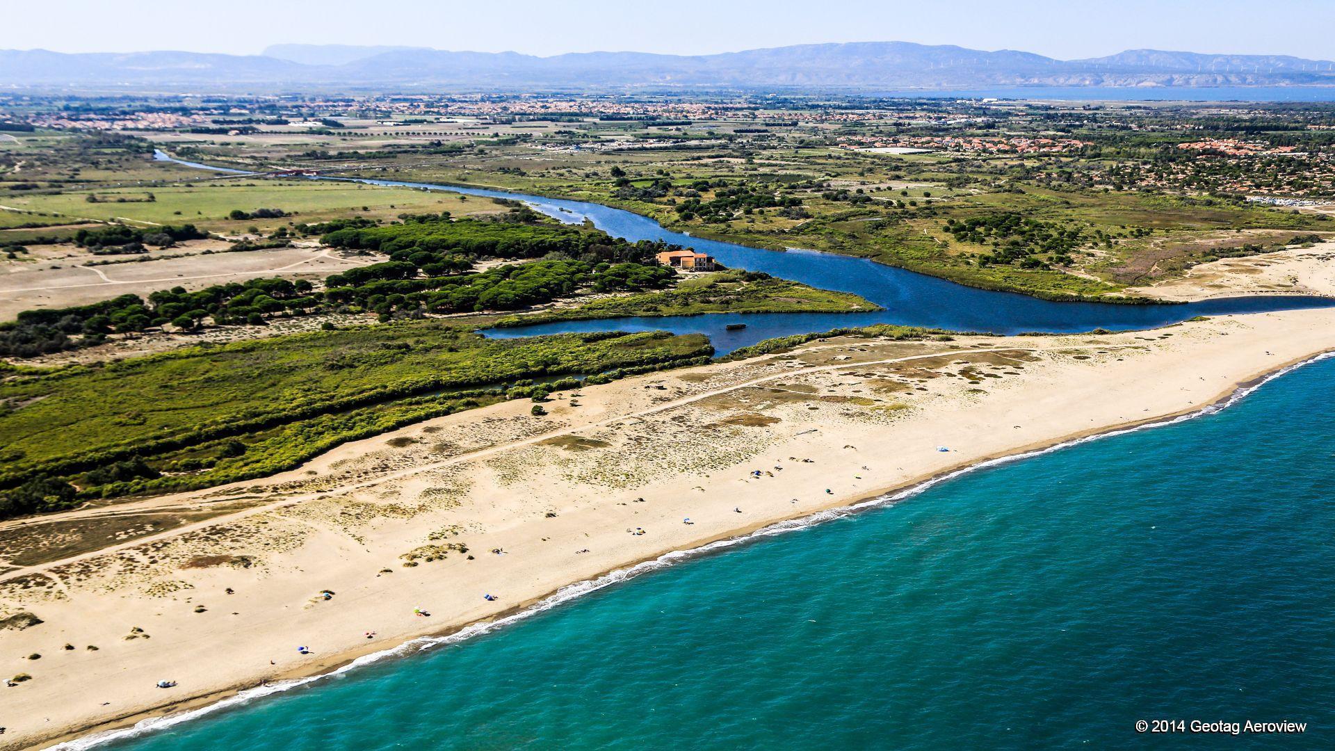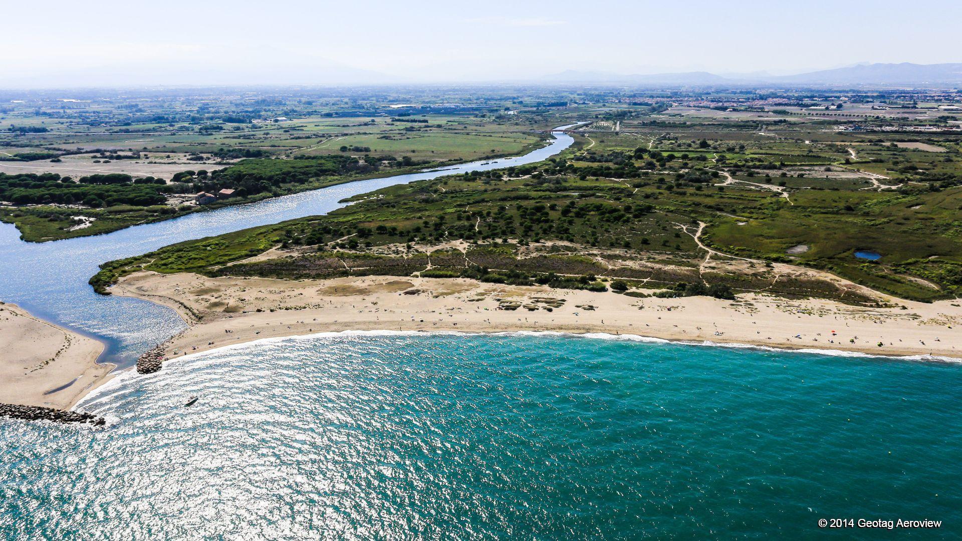Plage de Torreilles Sud on right side of river; Plage de Sainte-Marie Nord on left side of river