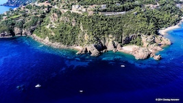 source Tripinview.com (1)L→R, from center: southeast (nudist) beach, middle beach, northwest beach (mostly hidden), Plage de l'Aiguille |