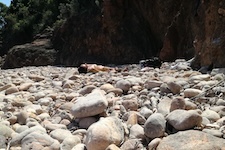 default view: This is where you step across the low wall at the sharp curve of the main trail to find the side path to the nude beach.