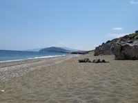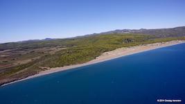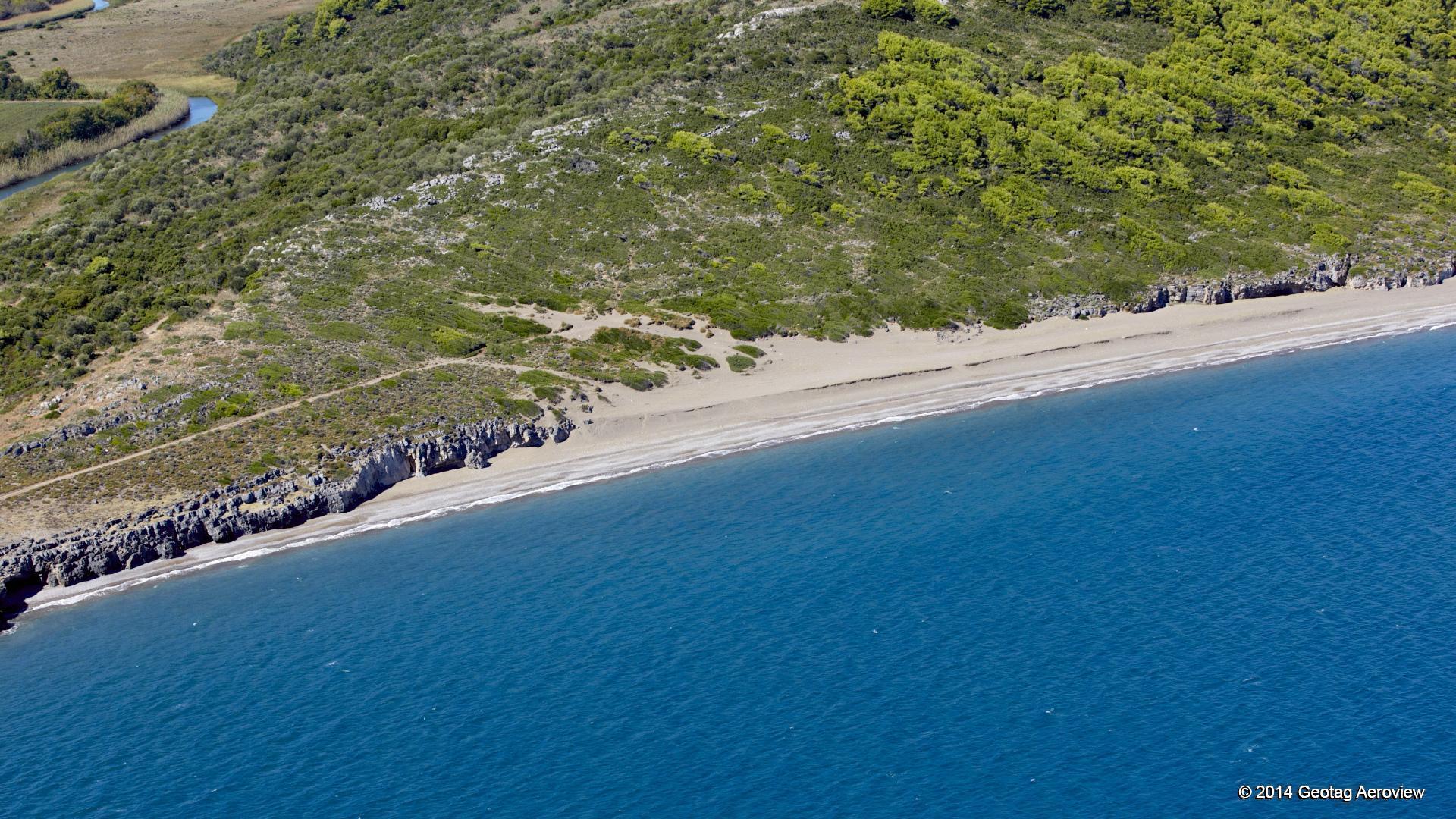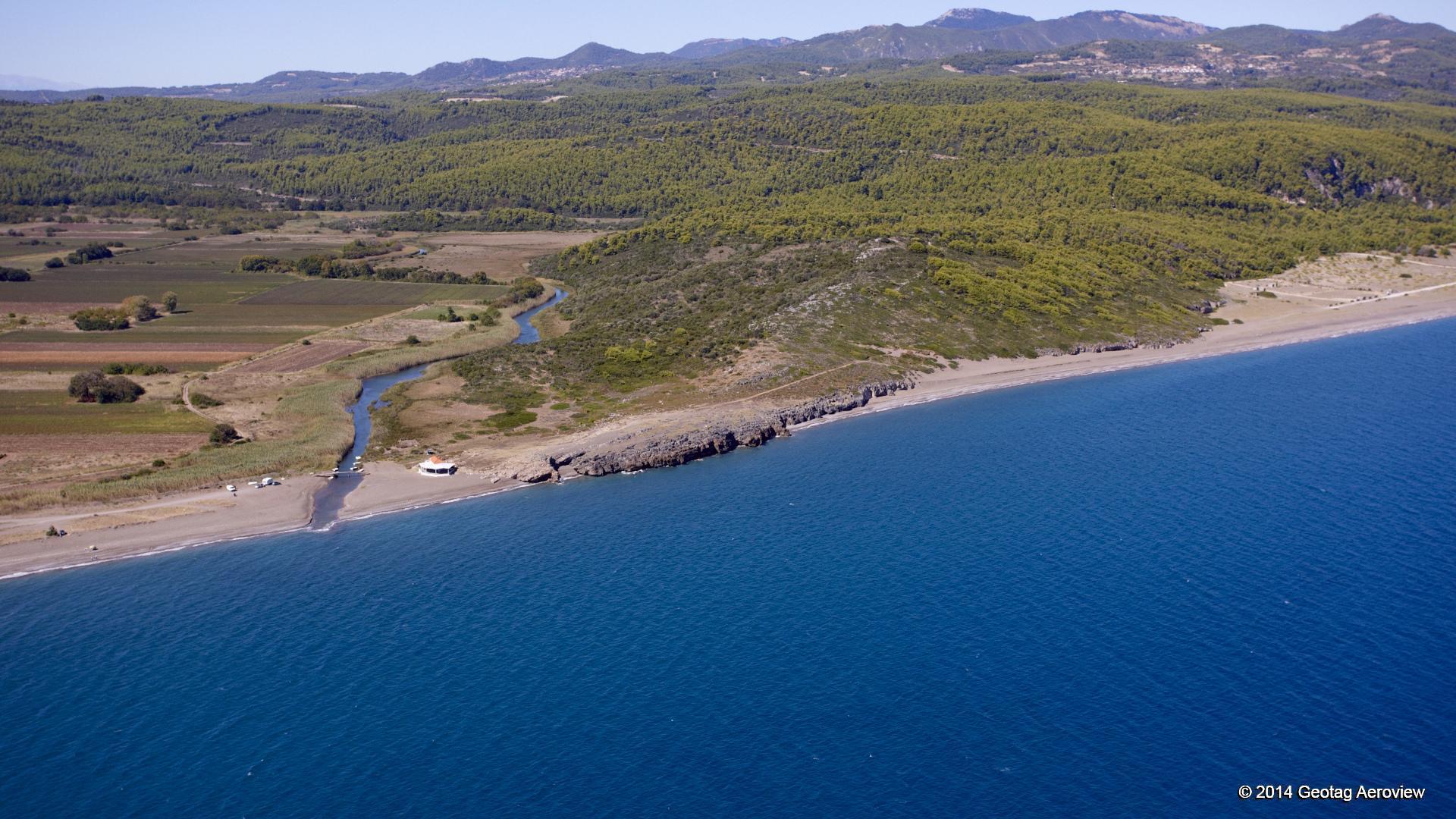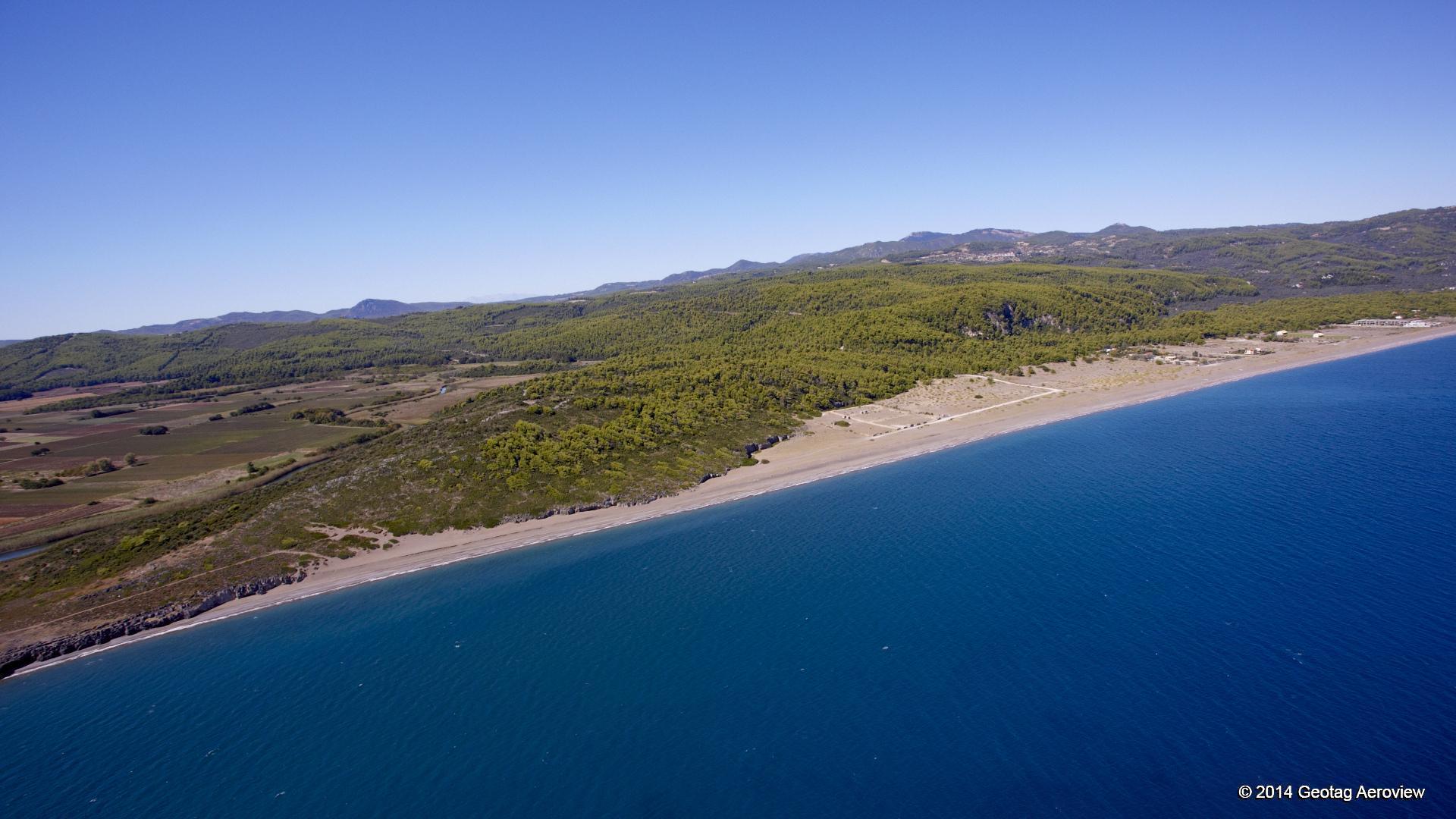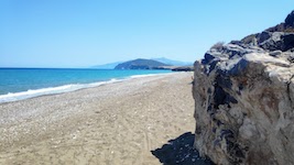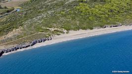(2)nude area just right of center, part of main area of Agia Anna Beach farther right (extending beyond scope of photo), part of Kria Vrisi Beach at left