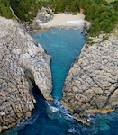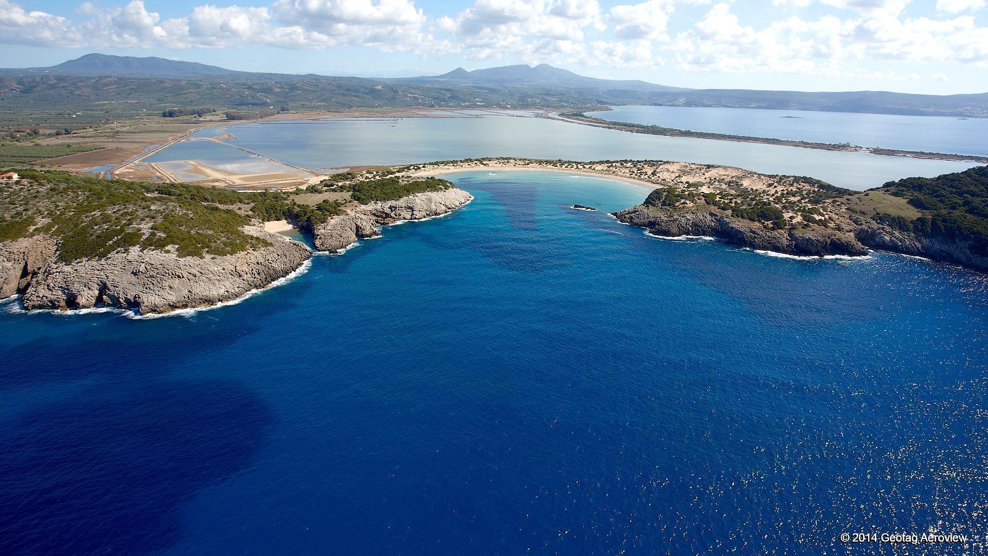 (1) Voidokilia is large crescent, with south end toward right; Glossa is small pocket beach toward left