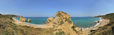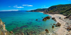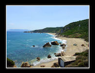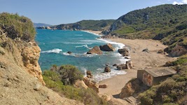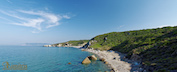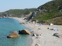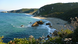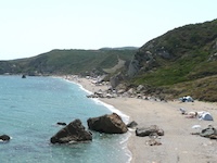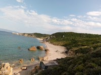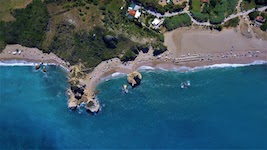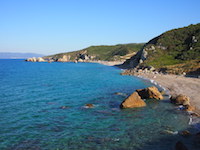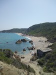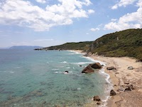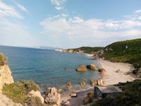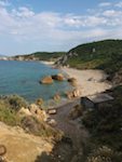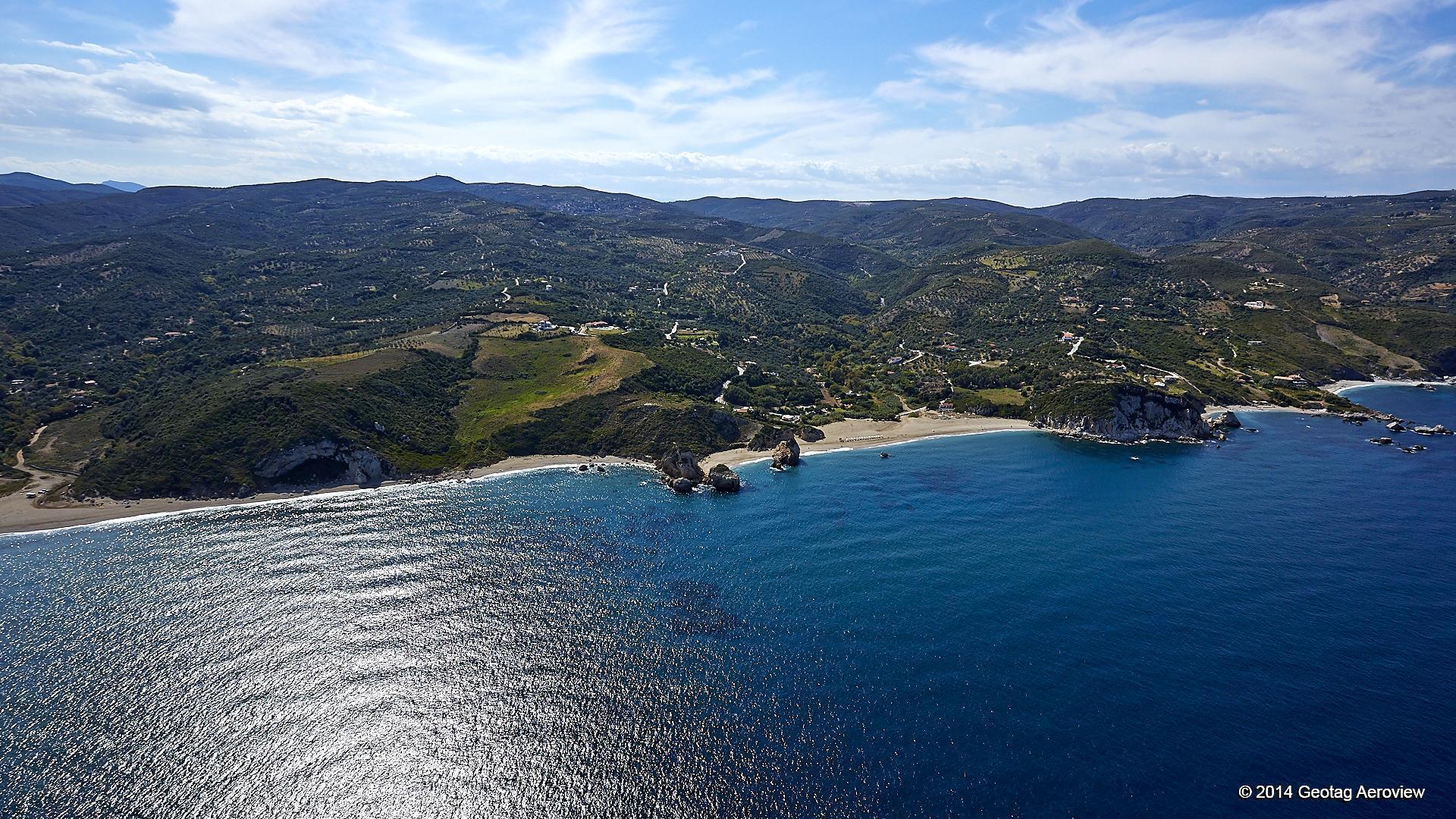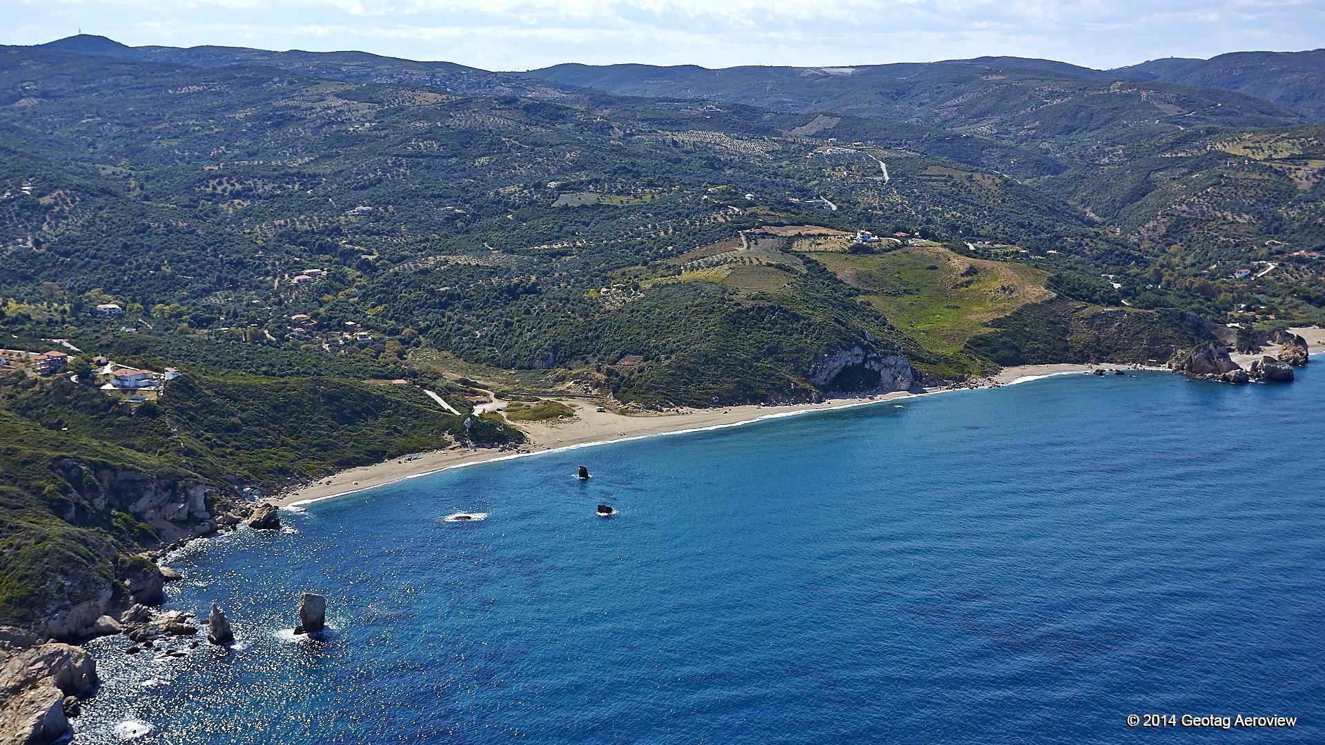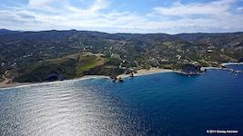 (4) nude area of Melani Beach along leftmost quarter of photo, with Potistika Beach farther right occupying most of photo