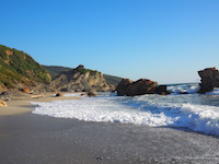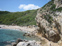 (5) big rock separating Potistika Beach and Melani Beach at center, with nude area of Melani in foreground to right of rock |