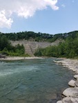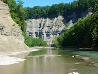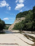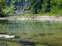 In the default view, the nude area is in the background beyond a bend of the river, hidden by the trees.